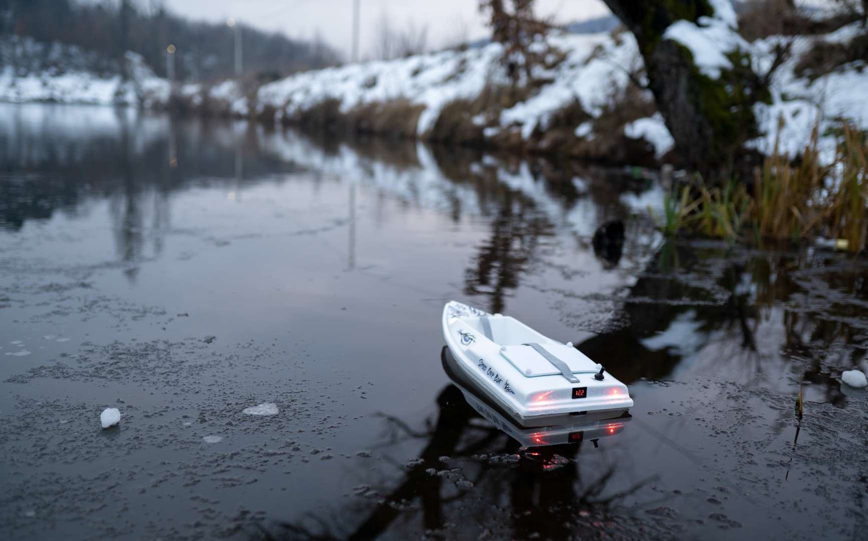 Čamac za prihranu Carp Boat Speedy PRO - cena: 600e verzija je model broda koji se koristi za razvlačenje mamac za Soma, Smuđa, Šarana ili druge vrste ribe. Može da ponese 1,5kg hrane poseduje jednu komoru. Ovaj model broda izrađujemo po naruđbini, nemamo ih gotove na stanju. Ime je dobio po svojoj brzini koja dostize 1,5 m/s. Takođe moze da koristi akumulatore od 7ah, 9ah ili lion baterije različitog kapaciteta.